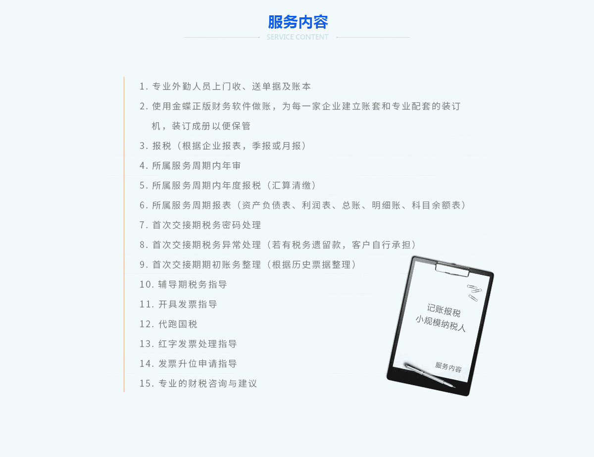 價格透明、300多位持證上崗會計、如出現(xiàn)錯報、漏報有有罰款,我司全額承擔