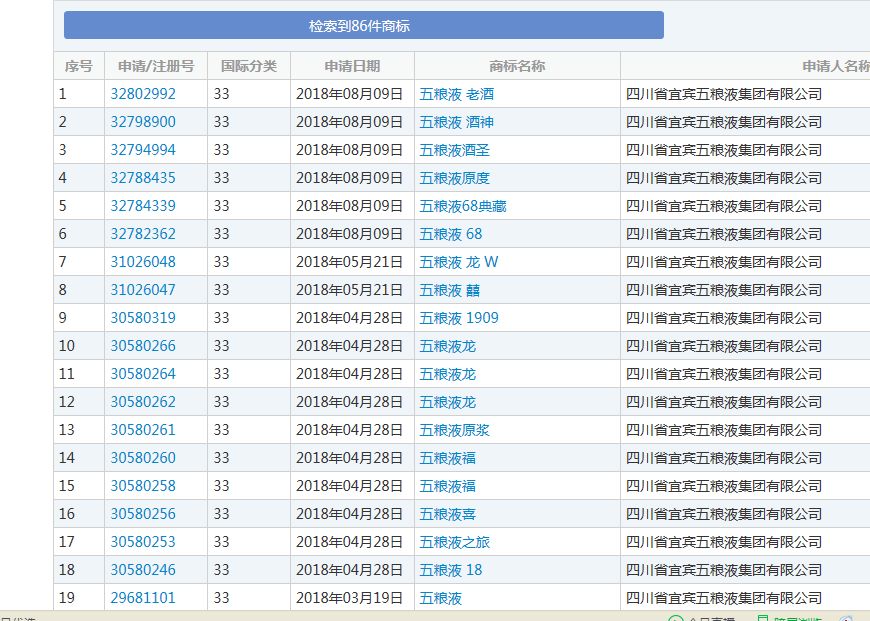 “六糧液”被反對(duì),是因?yàn)閺摹耙患Z液”到“千糧液”的所有東西都被五糧液集團(tuán)申請(qǐng)了商標(biāo)注冊(cè)。當(dāng)然,其他企業(yè)也申請(qǐng)過其他商標(biāo),但最終結(jié)果和這個(gè)“六糧液”商標(biāo)一樣,五糧液集團(tuán)的袋子里沒有問題。