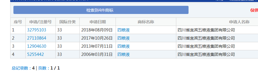 一個(gè)已經(jīng)進(jìn)入初審公告期,一個(gè)已經(jīng)作廢。2007年申請(qǐng)的“六糧液”商標(biāo),2011年注冊(cè)成功,現(xiàn)在已經(jīng)顯示無效。